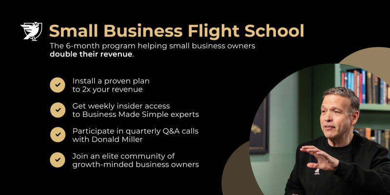 Today, he owns a $30M business that he built from the ground up. Small Business Flight School will teach you everything Donald learned so you can scale your business, too. This isn't a business philosophy course with theories that don't work in the real world. It's a hands-on, 6-month program designed to help small business owners double their revenue with a growth system that works.